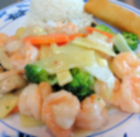 KUNG PAO! Now go and "paint the fence!" JK :-)! Instead order our shrimp version of Kung Pao, which is full of our bite-sized shrimp, crunchy carrots, diced celery, sliced water chestnuts, crispy bell peppers, peanuts & hot peppers. All stir fried in our spicy brown sauce. (Our white sauce can be substituted for a different spin on the plate or as a Gluten Free option.)